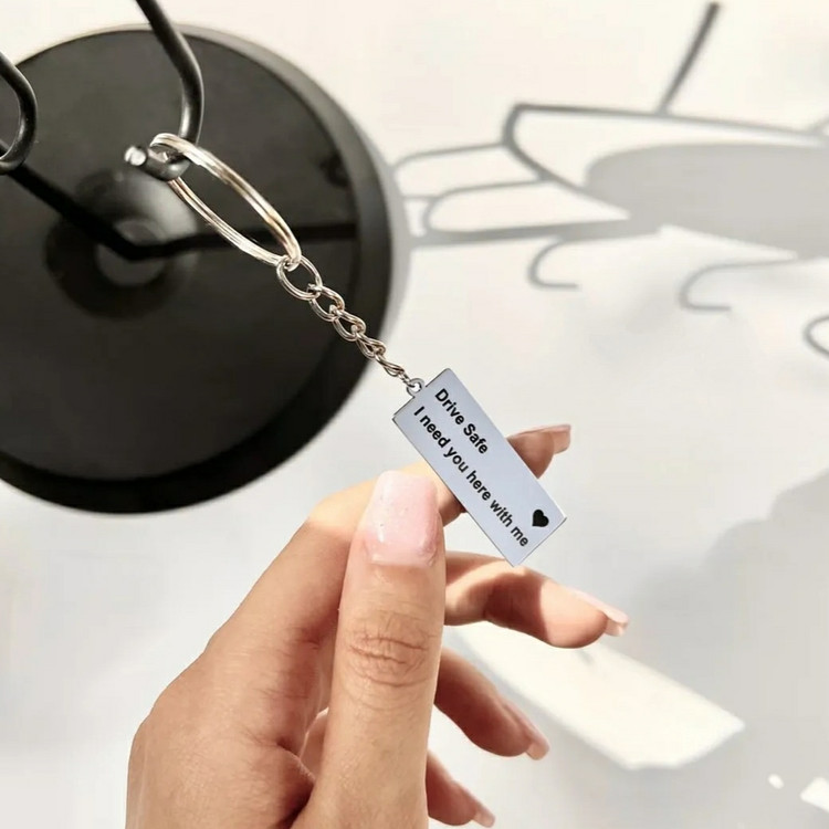 جا کلیدی drive safe i need you here with me از پلاک و زنجیر تمام استیل طراحی شده و ضد آب و رنگ ثابت می باشد طرح نوشته ی روی پلاک به صورت حکاکی و دائمی می باشد.