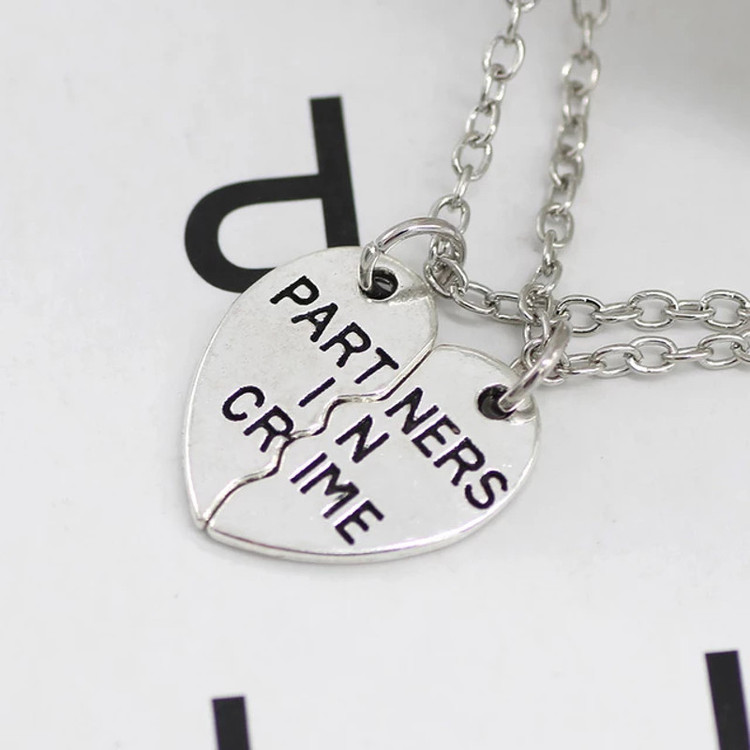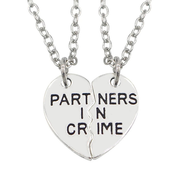 ست گردنبند partners in crime به معنای معنای بهترین دوست ها است، دو دوست که با هم بزرگ شدند و تا سال های طولانی هنوز دوستی بسیار نزدیکی با هم دارند. جنس گردنبند و زنجیر بسیار با کیفیت، تمام استیل و رنگ ثابت هستند. طول زنجیر چهل و پنج الی پنجاه سانتیمتر می باشد.
