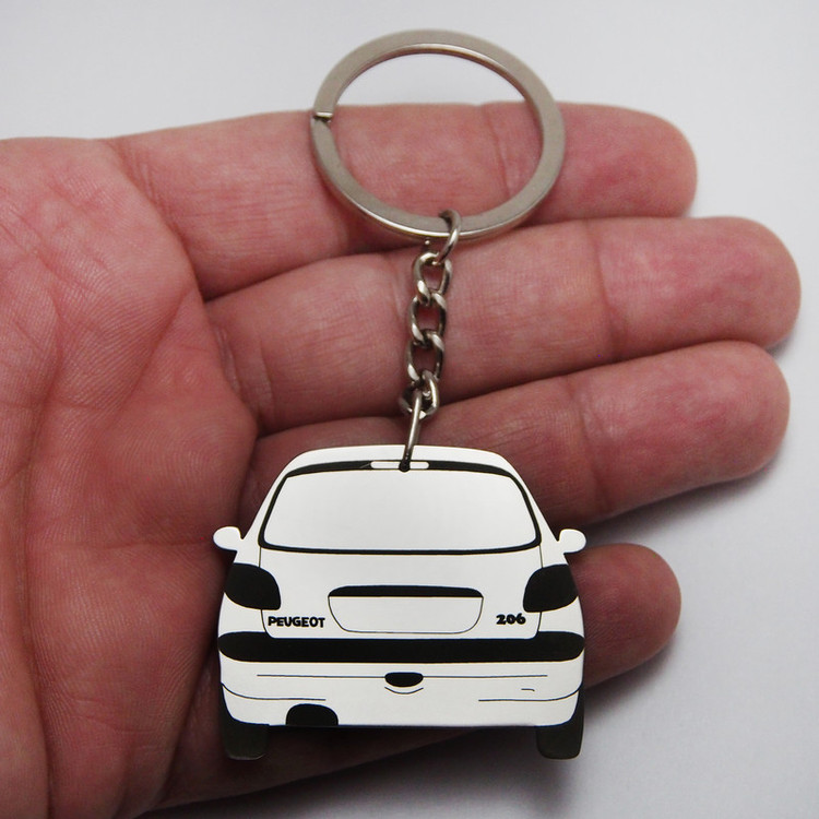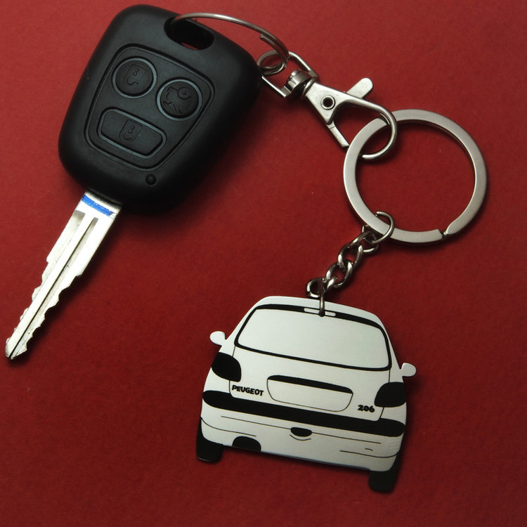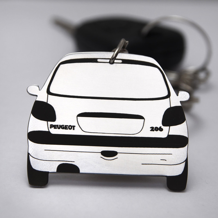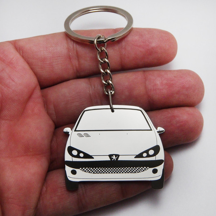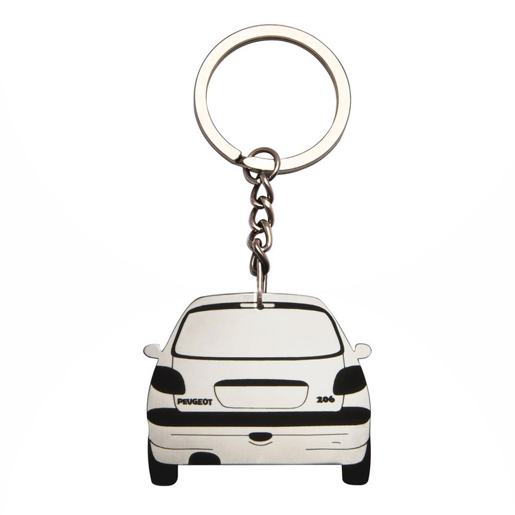 این جاسویچی دو طرفه بوده و شامل دو نما از رخ جلو و رخ عقب پژو ۲۰۶ است این کالا با استیل خالص به ضخامت یک میلیمتر ساخته شده که در برابر ضربه و خم شدن کاملا مقاوم بوده و همچنین برروی قسمت های حک شده لیزری یک مرحله تثبیت رنگ مشکی نیز انجام شده است. این محصول به دلیل به کارگیری از استیل خالص، کاملا رنگ ثابت بوده و در برابر رطوبت بصورت دائمی مقاوم است