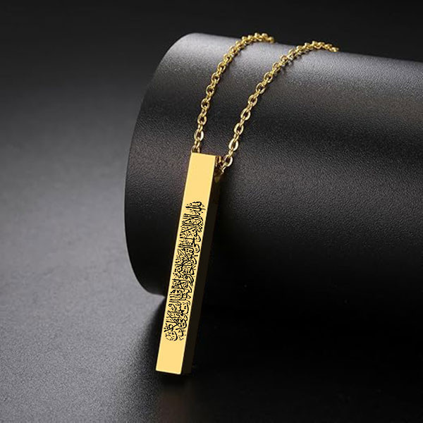 این محصول گردنبند از استیل ضد حساسیت و با بالاترین کیفیت ممکن ساخته شده است. رنگ زنجیر و پلاک این گردنبند ها ثابت است و به مرور دچار تغییر رنگ نمی شود. متن روی مکعب: عبارت شریفه آیه الکرسی است. طراحی متن این محصول بصورتی است که متن کامل در 3 وجه مکعب حک شده و یک سمت (سمت بدن) خالی است تا متن با بدن تماس مستقیم نداشته باشد.